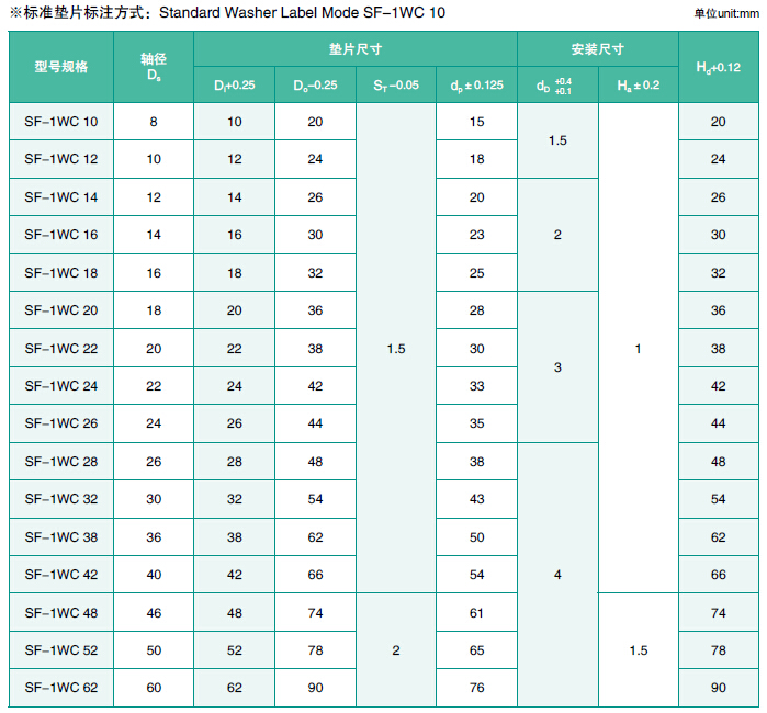 SF-1WC 標(biāo)準(zhǔn)公制墊片